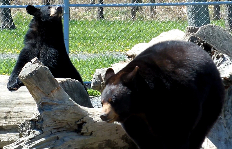 Maddy was introduced the next day. Maddy is pretty carefree. She was more interested in going to sleep, so she did. About a half-hour later Frank joined her. He was not afraid of anything. To lie down and go to sleep next to a bear that is 200 pounds heavier than you, especially one you just met, takes a lot of courage. We let the three of them get to know each other for a few days.