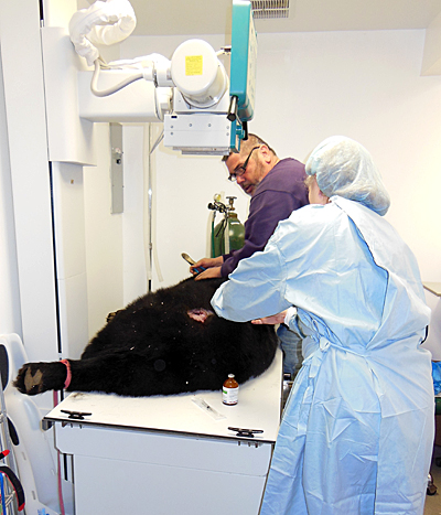 On July 24, 2012, a young wild black bear was brought to us. He had been hit by a car, was paralyzed, in a coma, and had a badly broken leg.